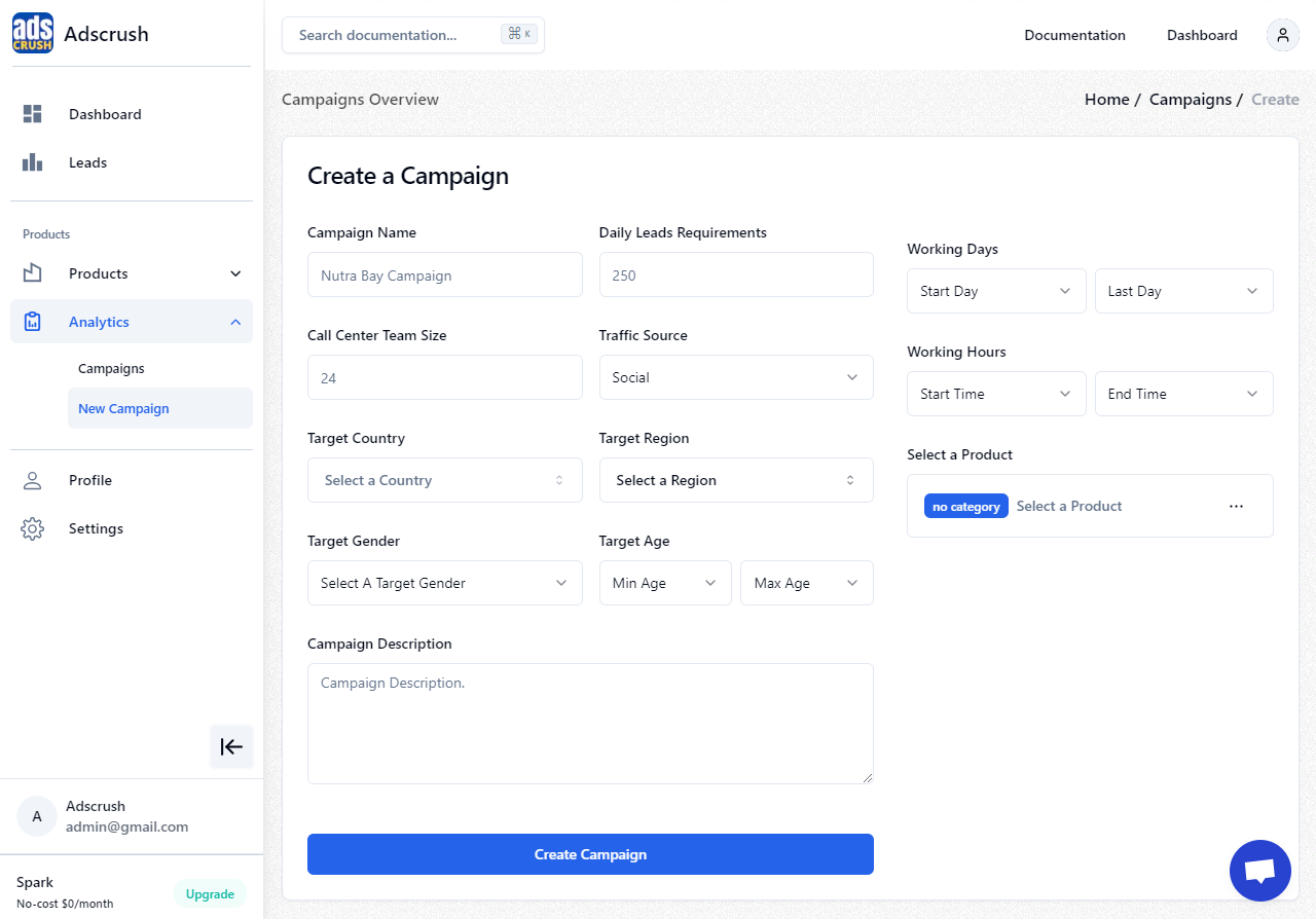 Welcome to the Create Campaign documentation for AdCrush. This guide will walk you through the process of creating a campaign using our platform.Introduction